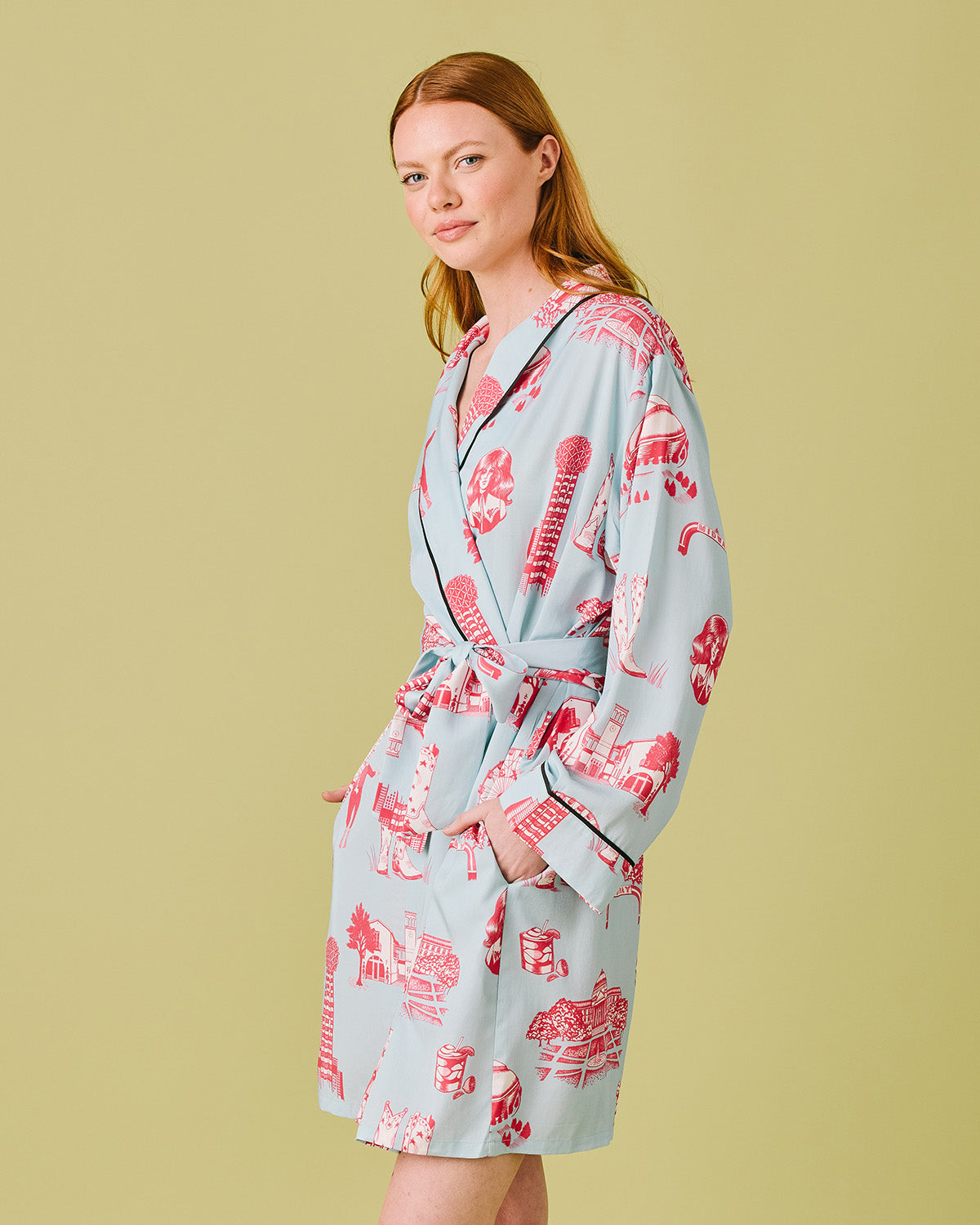 - Adjustable sash belt for perfect fit.